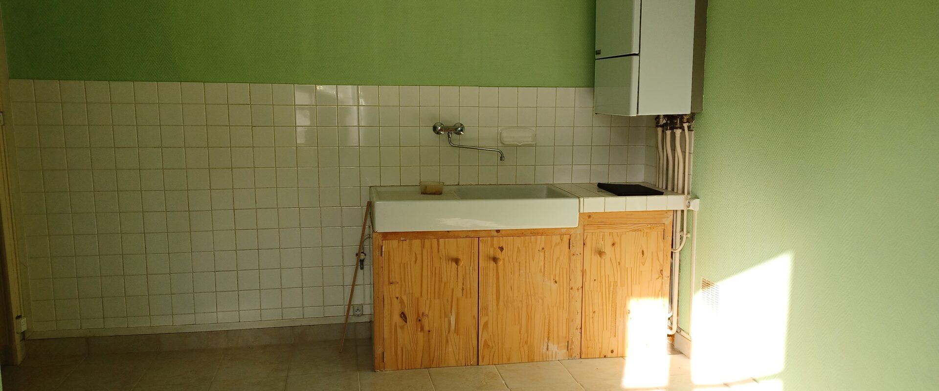 Dans un immeuble en copropriété, un appartement à rénover au 1er étage comprenant une cuisine, une chambre, une salle de bains avec WC.