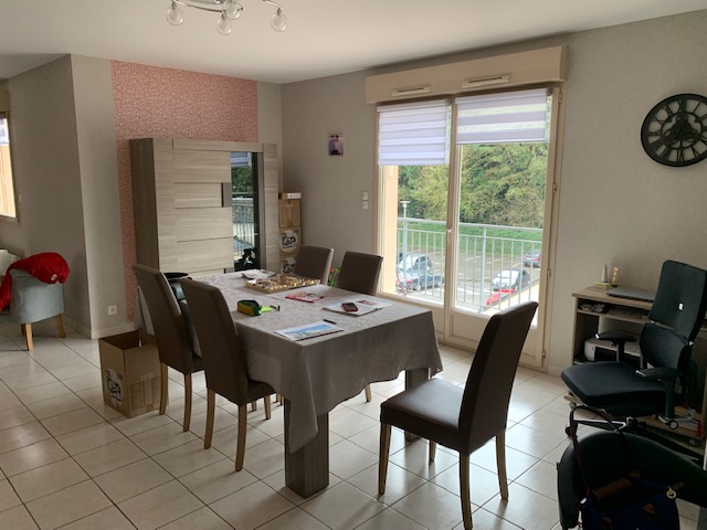 Un appartement de 95 m2, comprenant Entrée, cuisine ouverte sur séjour, salon, 2 chambres, salle d’eau, WC. Balcon, Garage clos.