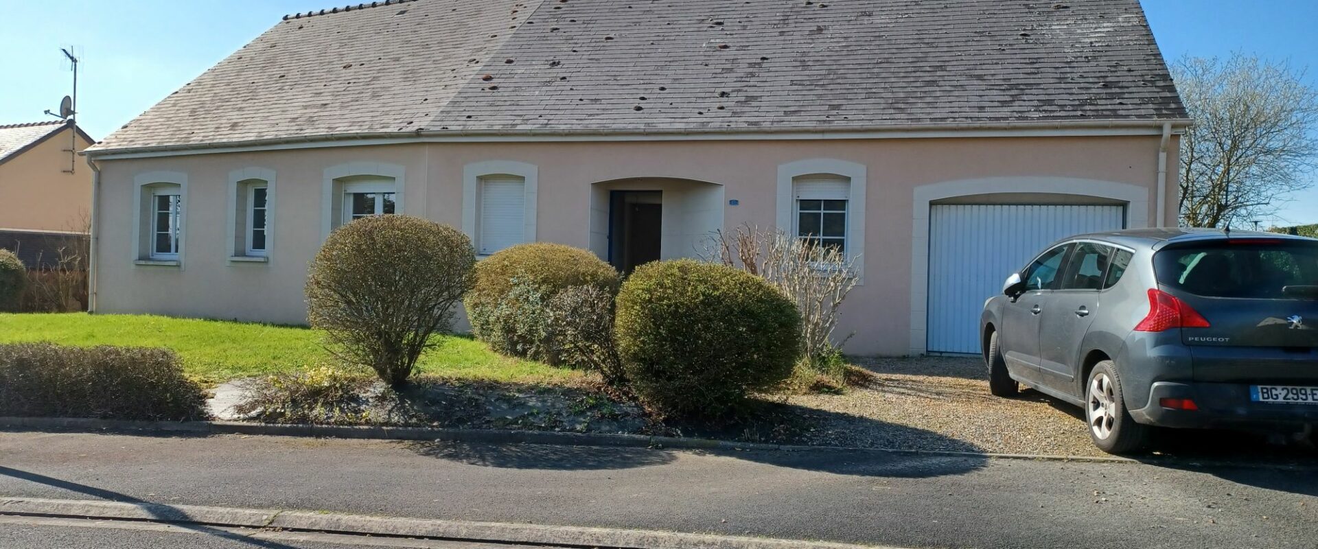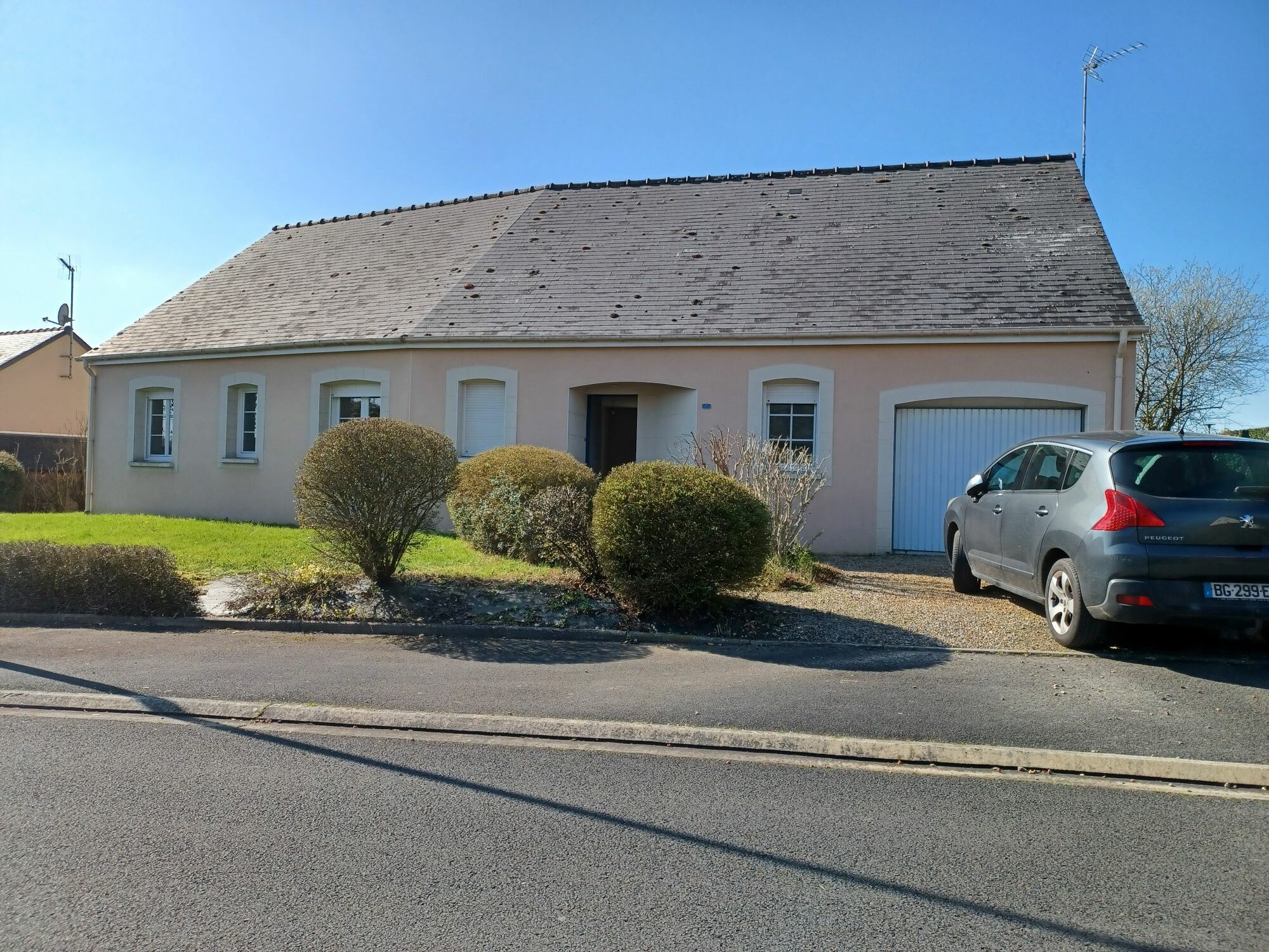 Pavillon de plain pied de 2003, comprenant entrée ouverte sur séjour-salon, bureau, cuisine non aménagée, trois chambres, salle d’eau, wc. Garage. Terrain de 740 m².