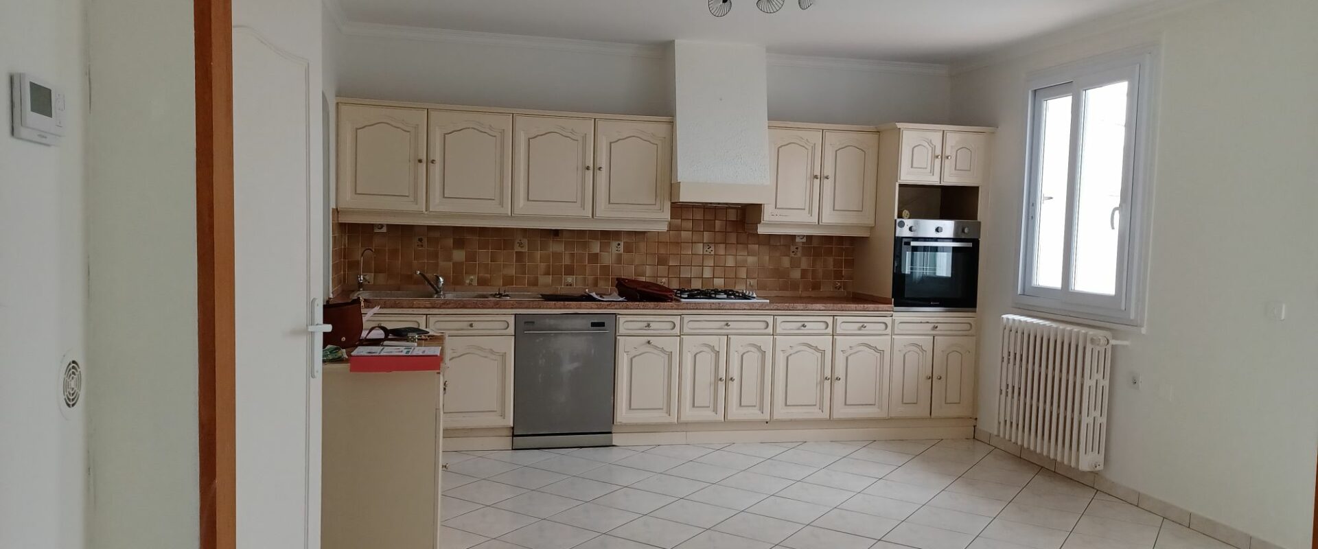 Maison d’habitation comprenant entrée, wc, chaufferie, cave, cuisine aménagée, séjour-salon, dégagement desservant wc, salle d’eau, 2 chambres, bureau. Garage, atelier et débarras.
